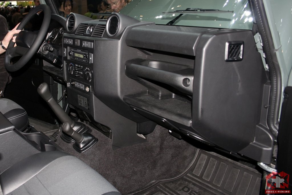 Sieht aus wie vor etlichen Jahren (bis auf die mittlerweise verschwundenen Lüftungsklappen unter den Fenstern) und wirkt auch im Inneren reichlich rustikal: Land Rover Defender. Wie sie den dann doch recht happigen Preis verteidigen? Ich habe nicht genauer nachgefragt. Vermutlich ist er Klassiker genug das er sich ähnlich der G-Klasse von Mercedes einen solchen Preis erlauben darf?