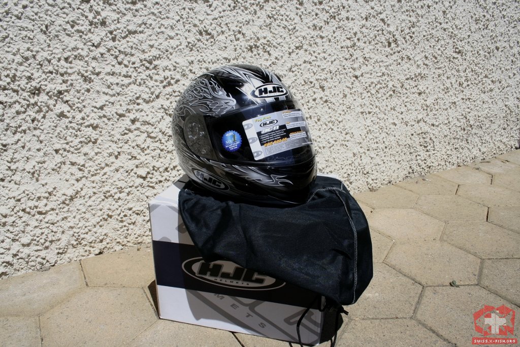 Man nehme gebrauchte Motorradbekleidung, gehe damit zu einem »Töffhänder« welcher auch Bekleidung und Helme führt und gibt sie dort als »Occasion« ab. Schon hat man einen Einkaufsgutschein, welchen man in einen Helm umwandeln kann.Bekommen habe ich noch mit einer kleinen Zuzahlung einen reduzierten HJC AC-11 mit schickem Dekor. Es war einer der wenigen Helme, welche a) auf meinen Kopf passten und b) das Tragen einer Brille ermöglicht haben.
