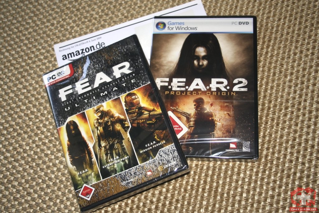 Der Inhalt wie auch schon beim letzten Paket von Amazon (damals aus England): Zwei Computerspiele. Genau genommen ja vier, denn bei der »Ultimate Version« von F.E.A.R. waren auch noch beide Erweiterungen mit dabei.
