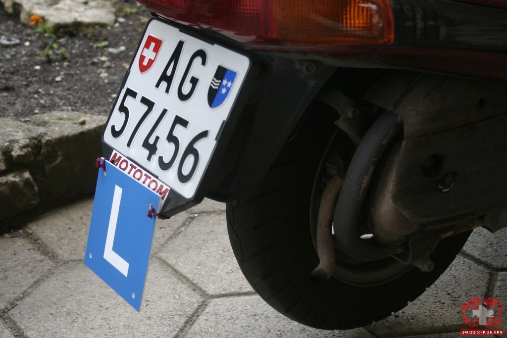 Nachdem ich das L-Schild erst einmal behelfsmäßig mittels zwei kurzer Schnüre befestigt hatte, konnte die erste Fahrt losgehen. Ist schon einige Jahre her gewesen das ich auf einem Roller saß. Dementsprechend hatte ich ein paar Problemchen. Bereits beim Losfahren war die erste Kurve etwas enger als ich zunächst dachte. Nun ja, man bremst und lernt.